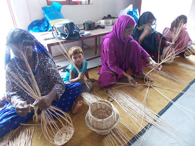 Making of hand-fan using the leafs of date-tree, making bedcover called “Ralli” using better color combination and design pattern will small pieces of cloths